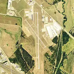 From November 1942 until June 1944, small numbers of American Army Air Forces flight cadets trained alongside the RAF students. During 1943 the school was expanded from 200 students to 300 students and two 3,000' asphalt hard surface runways were constructed by the Defense Plant Corporation (an agency of the US Government which had assumed ownership of the physical assets of all civilian flight schools in the United States). Runway 17/35 was extended to 5000' after the war.
