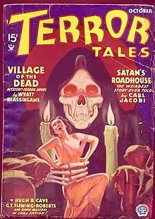Terror Tales was originally published by Popular Publications. The first issue was published in September 1934[1] One of the most successful horror magazines, it was joined shortly afterwards (1935) with its sister horror pulp, Horror Stories, also from the same publisher. Some of the writers whose work appeared in Terror Tales included E. Hoffmann Price, Wayne Rogers, Wyatt Blassingame (who later wrote nonfiction books for children), Ray Cummings, Paul Ernst, Arthur Leo Zagat and Arthur J. Burks.[2] Rudolph Belarski provided several covers for the magazine. Terror Tales ceased publication in March 1941.[2]