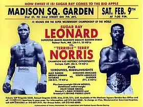 Terry Norris vs. Sugar Ray Leonard was a professional boxing match contested on February 9, 1991 for the WBC super welterweight title.