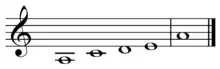 Tetratonic music was noted as common in Polynesia and Melanesia.[11] On Guadalcanal in particular, anhemitonic pentatonic and tetratonic scales are the predominant types, although the minor second does nevertheless occasionally appear as a melodic interval. The most often used melodic intervals, however, are the major second, minor third, perfect fourth, perfect fifth, and octave.[12]
