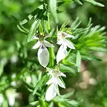 Teucrium cubense is a species of flowering plant in the mint family known by the common names small coastal germander[1] and dwarf germander. It is native to a section of the Americas that includes the southwestern - south-central United States (California, Arizona, New Mexico, Texas, Oklahoma, Louisiana, Alabama), parts of the Caribbean, Mexico, Costa Rica, and southern South America (Argentina, Uruguay, southern Brazil).[2][3][4][5][6][7] In general, the plant has lobed leaves and a flower corolla with a broad lower lobe and smaller lateral lobes. The flower may be white or blue-tinged with purple speckles.