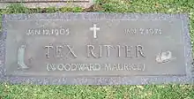 Woodward Maurice "Tex" Ritter (January 12, 1905 – January 2, 1974) was an American country music singer and actor popular from the mid 1930s into the 1960s, and the patriarch of the Ritter acting family (son John, grandsons Jason and Tyler, and granddaughter Carly). He is a member of the Country Music Hall of Fame.
