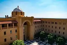 Construction of the permanent main campus began in early 2012 after formal approval of a $75 million university development fund from the Texas A&M System Board of Regents.[19] The development outlined six phases from 2012 to 2025.[19] In the first phases of development, the university constructed a large plaza, known as Main Quad, bracketed by the Central Academic Building (CAB), Patriots' Casa, Auditorium, and the Senator Frank L. Madla Building.[18] Following completion of the initial phase, the university consolidated operations to the newly opened main campus. The Brooks City-Base campus was consolidated into Main Campus and held the final classes in December 2016. Texas A&M-San Antonio classes at The Alamo Colleges' Alamo University Center were consolidated into Main Campus and held the final classes in May 2017.
