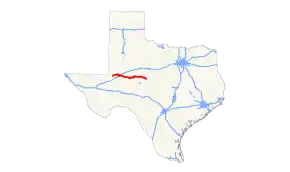 | Sterling | | 107.5 | 173.0 | Interchange; west end of US 87/SH 163 overlap | |
