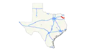 The route was originally designated on August 21, 1923 along its current route, with an extension farther northwest, terminating in Paris along previously designated SH 35.[3] On February 21, 1938, SH 49 Business was designated in Bogata.[4] On September 26, 1939, the section from Paris to Mt. Pleasant had again been transferred, this time to U.S. Highway 271 (which it was cosigned with since 1935). SH 49 Business was renumbered as Loop 38.