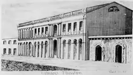 The Théâtre d'Orléans (English: Orleans Theatre) was the most important opera house in New Orleans in the first half of the 19th century. The company performed in French and gave the American premieres of many French operas. It was located on Orleans Street between Royal and Bourbon. The plans for the theatre were drawn up by Louis Tabary, a refugee from the French colony of Saint-Domingue (Haiti). Construction began in 1806, but the opening was delayed until October 1815 (after the War of 1812). After a fire, it was rebuilt (with the adjacent Orleans Ballroom) and reopened in 1819, led by another émigré from Saint-Domingue, John Davis. Davis became one of the major figures in French theatre in New Orleans. The theatre was destroyed by fire in 1866,[1][2] but the ballroom is still used.