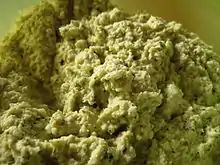The blending of ghee rice with masala is done by the dum process (A method of cooking by sealing a lid tightly and placing hot charcoal on it). The biryani masala and ghee rice are arranged in layers inside the dish. Meat is cooked with masala on slow fire; it is layered with rice and the lid of the container is sealed with Maida dough or a loin cloth. Hot coal or charcoal is placed then above the lid.[38] Thalassery biryani is a Pakki-Biryani. There are two types of biryani; "Pakki" and "Kacchi", In Pakki style, the ghee rice is added to the fully cooked chicken-masala mix and then cooked by the "dum" process; where as in Kacchi style the ghee rice is added to the half cooked chicken and then cooked till it is fully cooked or the dum process is used.[39]