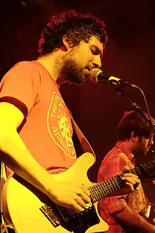 Rolf Klausener is the principal songwriter, as well as vocalist and guitarist.[2] The other members are drummer Jeffrey Malecki, guitarist Jeff Debutte, percussionist Pat Johnson and bassist Steven Lappano. Devaux joined the band in 2006, and redheaded multi-instrumentalist/hype man Shaun Weadick joined in 2007, though they both left in 2008. In early 2010, long-time guitarist Howie Tsui left to focus on his visual art practice.[3]