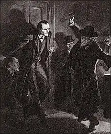 ![]() Mycroft Holmes visiting his brother, 1908 illustration by Arthur Twidle in The Strand Magazine | |