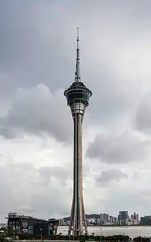 In this leg's Roadblock, one team member had to walk around the outer rim of the Macau Tower observation deck and then perform the world's tallest (at the time) SkyJump by falling 660 feet (200 m) to the ground in a controlled descent to receive their next clue.
