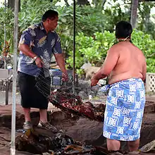 In the one aired choice for the final Detour, they had to season a 145-pound (66 kg) pig with island flavoring, then carry it suspended on a bamboo pole 200 yards (180 m) along the beach to a Hawaiian lūʻau. At the lūʻau, they had to properly cover the pig for traditional kālua cooking to receive their next clue.