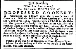 In her 1754 book Professed Cookery, Glasse's contemporary Ann Cook launched an aggressive attack on The Art of Cookery using both a doggerel poem, with couplets such as "Look at the Lady in her Title Page, How fast it sells the Book, and gulls the Age",[20] and an essay; the poem correctly accused Glasse of plagiarism.[17][20]