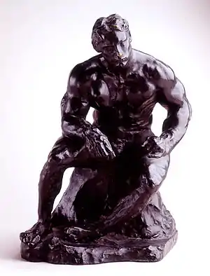 During the same period Rodin also produced The American Athlete, with more exaggerated musculature and its head turned to the right. He presented both works to their model. Despite several variants, they are both lesser-known works of Rodin.[3]
