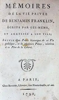 | Original title | Mémoires de la vie privée de Benjamin Franklin |