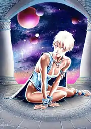 In December 2000 a special 2000AD issue (titled 'Prog 2001') was released featuring another full colour portrait of Halo. Titan were planning a reissue of the Complete Ballad of Halo Jones in July 2001 and this portrait was used as the cover art. The first collected edition had been published by Titan in September 1991. This time the introduction to the book was written by Ian Gibson. The release of this volume garnered positive reviews[4] and renewed many people's interest in Halo Jones. 2000AD hyped up the release on its site: "Alan Moore's hugely acclaimed saga of one woman's quest for reason in a galaxy gone mad. Out of print now for nearly a decade, fans have been clamouring for this collection anew, especially with the success of Moore's ABC line. This classic tale, lovingly rendered by artist Ian Gibson, is now available again in its epic entirety".