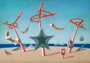 The Beached Margin is a 1937 painting by the English painter Edward Wadsworth. It depicts a beach still life where three poles in the sand are decorated with semi-abstract objects and geometrical shapes.