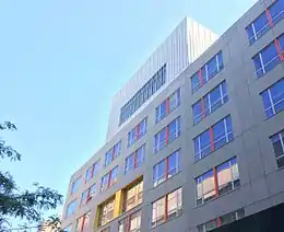 As of September, 2015, Beacon occupies a seven-story building located at 522 West 44th Street, between 10th and 11th avenues. The building, previously used as a book warehouse by the New York Public Library was sold to the School Construction Authority for $45 million in August, 2011. Construction began in August, 2012, with a ground breaking ceremony attended by high-ranking city officials including City Council Speaker Christine Quinn, Department of Education Chancellor Dennis Walcott, and Mayor Michael Bloomberg.[6] The building, built by Skanska USA for $88 million, houses a full-sized cafeteria, black-box theater, dance studio, auditorium, film lab, and library, with writing labs, art studios, and study spaces throughout the building.[7]