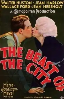 The Beast of the City is a 1932 American pre-Code gangster film featuring cops as vigilantes and known for its singularly vicious ending. Written by W.R. Burnett, Ben Hecht (uncredited), and John Lee Mahin, and directed by Charles Brabin, the film stars Walter Huston, Jean Harlow, Wallace Ford, Jean Hersholt, and Tully Marshall.