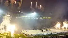 The University of Michigan added permanent lighting to Michigan Stadium in time for the event.[7] The University later announced that fireworks would be used when Michigan entered the ice during the game, as well as after every goal.[8] Following the national anthem, a flyover was conducted by a B-2 Stealth Bomber.[6]