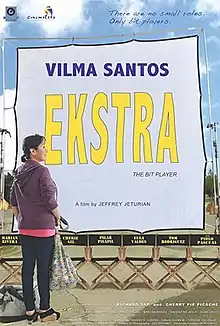 The Bit Player (Filipino: Ekstra) is a 2013 Filipino socio-realist drama-comedy film by Jeffrey Jeturian. The film stars Vilma Santos as Loida Malabanan, who spends her days dreaming of her big break while working with the country’s best small screen actors.[1] The film competed under the Directors Showcase sidebar of 9th Cinemalaya Independent Film Festival. It topped the box office in all four venues of said festival.[2] The film was released in mainstream theaters by Star Cinema on August 14, as part of their 20th Anniversary offering.