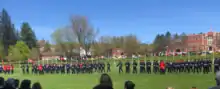 In early May each year, the Corps sends two platoons and the Colour Party to march with the Regiment in their Church Parade. The Annual Corps review is held on the Friday of May long weekend; this event includes demonstrations by the drill team and the cadet band. Today, the Corps plays a major role in the lives of students, schools, and communities. The program, compulsory for all students, is organized and run almost entirely by senior cadets and Black Watch officers. Instruction is given in skills such as first aid, outdoor survival, shooting, archery, and service-type activities and focuses on leadership education.[4] Returning cadets carry out and organize a number of service-orientated activities.