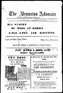 The Branxton Advocate: Greta and Rothbury Recorder has only one known issue. This issue published on a variety of topics including women's interests, notes on the war, general interest topics, poetry and advertising.[2]