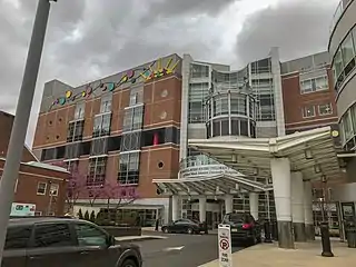The Bristol-Myers Squibb Children's Hospital at Robert Wood Johnson University Hospital (BMSCH) is a nationally ranked freestanding 105-bed,[1] pediatric acute care children's hospital adjacent to RWJUH. It is affiliated with both Robert Wood Johnson Medical School and the neighboring PSE&G Children's Specialized Hospital. The hospital is a member of RWJBarnabas Health, 1 of 3 children's hospitals in the network. The hospital provides comprehensive pediatric specialties and subspecialties to infants, children, teens, and young adults aged 0–21[2][3] throughout New Jersey[4] and features an ACS verified level II pediatric trauma center.[5][6] Its regional pediatric intensive-care unit and neonatal intensive care units serve the Central New Jersey region.[7]