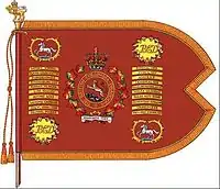 In the Great War the regiment was not mobilized, but in December 1914 many volunteers from the regiment joined the newly formed 2nd Regiment Canadian Mounted Rifles. After some limited service in France as cavalry, the unit was reroled to infantry as 2nd Canadian Mounted Rifles Battalion on January 1, 1916.[2] The battalion became part of the 8th Canadian Infantry Brigade, and fought with great luck and success on the Western Front. Despite being trained as cavalry but deployed as infantry, the regiment managed the war well. Captain "Jock" MacGregor was awarded the Victoria Cross for actions taken in the battle at Cambrai on September 29, 1918. The actions and awards of the 2nd Canadian Mounted Rifles are perpetuated today by the British Columbia Dragoons, their direct descendants.