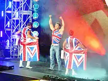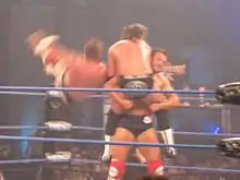 After losing the Team 3D Invitational tournament, the British Invasion tried to interfere in Beer Money, Inc.'s match on 6 May's Impact! but were prevented from doing so by Team 3D, who had gained respect for Beer Money, Inc.[8] The following week, Team 3D revealed in an interview that they had invited the British Invasion to TNA and felt betrayed by their villainous attitude. Williams responded by hitting Devon with a briefcase to cost them their match that week.[9] At Slammiversary, the British Invasion interfered in the TNA World Tag Team Championship match, causing Team 3D to lose their titles to Beer Money, Inc. Earlier in the evening, the British invasion were scheduled to face Rhino and Eric Young in a match, but Young walked out on his partner to be replaced by Rhino's prodigée Jesse Neal, but the British Invasion won regardless.[10] Because Mick Foley wanted a rematch of his own, he persuaded The Main Event Mafia to give him it by promising their tag team, Booker T and Scott Steiner, a World Tag Team Championship match.[11] This angered Team 3D who goaded the Main Event Mafia into a match for the contendership, but once again British Invasion interfered and used the briefcase to cause Team 3D to lose the match and with it, their chances of regaining the TNA World Tag Team Championship.[12] Team 3D countered by costing Williams his Ladder match for the X Division Championship briefcase, but afterwards the British Invasion, helped by Bashir and Kiyoshi, assaulted Team 3D.[6] That Sunday, at the Victory Road PPV, the British Invasion faced Team 3D for the IWGP Tag Team Championship, a championship sanctioned by New Japan Pro Wrestling (NJPW) which had a working agreement with TNA at the time. The British Invasion lost their match and afterwards Team 3D drove Bashir through a table.[13]