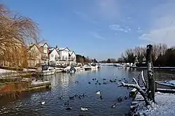 Various attempts were made to extend the navigable rivers. The longest-lasting was on the River Waveney, where an Act of Parliament passed on 17 March 1670 authorised improvements which included three locks, at Geldeston, Ellingham and Wainford. The head of navigation became a new staithe at Bungay. The new section was a private navigation which was not controlled by the Yarmouth Haven and Pier Commissioners, who had responsibility for the rest of the Broadland rivers.[6] It remained in use until 1934 and, although the upper two locks have been replaced by sluices and Geldeston lock is derelict, the Environment Agency have negotiated with local landowners to allow use by canoes and unpowered vessels which can be portaged around the locks.[7]