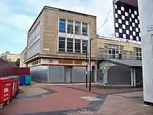 By 2006 demolition work had freed for development a site encompassed by Hall Ings, Well Street, the new Lower Kirkgate and Charles Street.[6] In April 2010, after several years in which no construction had taken place, the project was mothballed and work began on creating a temporary park on part of the site.[7] The site was subsequently occupied by protesters unhappy about the lack of development.[8] In January 2014, the park was demolished, and work resumed on the construction.[9]