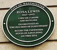 There is reference of a hotel operating in the site under the name of "Miller's Hotel" from the early 1800s. However, the hotel was renamed "The Cavendish" in 1836.[5] In 1902, Rosa Lewis bought The Cavendish and put her husband Excelsior Tyrel Chiney Lewis and his sister Laura in charge. By 1904, though, the hotel was not going very well: debts spiralled out of control, Excelsior was having a drinking problem and, therefore, Rosa decided to throw them out and divorce her husband.
