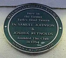 The Club or Literary Club[1] is a London dining club founded in February 1764 by the artist Joshua Reynolds and essayist Samuel Johnson, with Edmund Burke, the Irish philosopher-politician.[2][3]