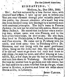 Initially published under the name The Weekly Advocate,[1] New York's Colored American was a weekly newspaper of four to six pages. It circulated in free black communities in the Northeastern United States.