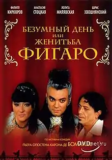 Crazy Day or The Marriage of Figaro (Russian: Безумный день, или женитьба Фигаро) is a modern comedy musical staged by television channels «NTV» (Russia) and «Inter» (Ukraine) in association with «Melorama Production», under direction of Semen Gorov in 2003, based on the 1784 Pierre Beaumarchais' play The Marriage of Figaro. The musical was aired for the first time on the New Year's night of 2004.[1]