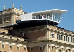Two copies of The Cube were made, and they both tour Europe in a different city each year. During 2011, versions of the restaurant visited Milan and Brussels,[2] while in 2012 they are in London and Stockholm. The restaurant proved so popular in London that it was announced in September 2012 that the restaurant would stay in the city until 31 January 2013.[3] There are further plans for the restaurant to visit Switzerland and Russia.[4] In each city, the restaurant is placed on top of a monument; in Brussels it was on top of the triumphal arch at the Parc du Cinquantenaire,[5] in Milan by the Galleria Vittorio Emanuele II, in London it is located on top of the Southbank Centre.[3]