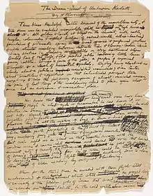 ![]() First page of H. P. Lovecraft's original manuscript to "The Dream-Quest of Unknown Kadath" | |