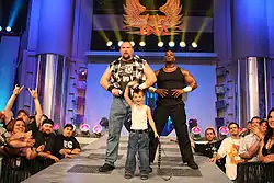 After a lengthy hiatus, Bubba, D-Von and Spike made their final appearance at a WWE sanctioned event as part of the original One Night Stand in June 2005.[10][25] In July 2005, WWE opted not to continue contract renewal negotiations with the Dudley Boyz.[10][26] In addition, there was a mass of wrestlers (including Spike) that were released by WWE for budgetary reasons.[9][26] In August 2005, Bubba and D'Von were issued with legal notices instructing them not to use the (WWE trademarked) name "Dudley".[10] This led to a degree of acrimony between the former Dudleys and their erstwhile employers, as they had used the names since 1996, several years before all ECW intellectual property was acquired by WWE as a result of bankruptcy proceedings. Both believed Paul Heyman had granted them the rights to the name.