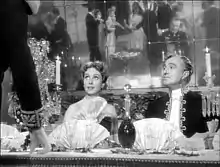 The film's script became considerably different from de Vilmorin's short novel, and Ophüls stated that "besides the earrings, there's very little of the novel left in the film...[just] the senselessness of that woman's life."[5] Ophüls spoke privately with Danielle Darrieux between takes throughout the shooting[6] and told her to portray the emptiness of her character.[7] At first Ophüls was too embarrassed to give direction to Vittorio De Sica out of respect for De Sica's work as a director, but the two became friends during the film's production.[8] Darrieux, Charles Boyer and Annenkov had all worked together in 1936 on the film Mayerling, which was Darrieux's first leading role.[9]