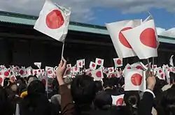 When the Emperor ceases his greeting, the crowd starts waving the flags again and the Imperial Family waves back.[8]