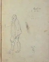 Sketch from inside the rear cover of the prompter's script from 1855, which probably shows the householder Bengt Gauteson drawn by the playwright himself, Henrik Ibsen.