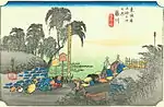 The Fifty-Three Stations of the Tōkaidō (東海道五十三次, Tōkaidō Gojūsan-tsugi), in the Hōeidō edition (1833–1834), is a series of ukiyo-e woodcut prints created by Utagawa Hiroshige after his first travel along the Tōkaidō in 1832.[1]
