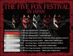 The Five Fox Festival in Japan[lower-alpha 1] (stylized as THE FIVE FOX FESTIVAL in JAPAN) was a Japanese concert tour by Japanese band Babymetal. The tour ran from July 18, 2017 to October 15, 2017, taking place in Japan, and commenced after the band served a series of opening acts for various bands from 2016 to 2017.