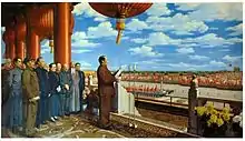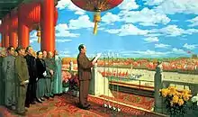 The Founding Ceremony of the Nation (or The Founding of the Nation, Chinese: 开国大典; pinyin: Kāiguó Dàdiǎn) is a 1953 oil painting by Chinese artist Dong Xiwen. It depicts Chairman Mao Zedong and other Communist officials inaugurating the People's Republic of China at Tiananmen Square on October 1, 1949. A prominent example of socialist realism, it is one of the most celebrated works of official Chinese art. The painting was repeatedly revised, and a replica painting made to accommodate further changes, as the leaders it depicted fell from power and later were rehabilitated.