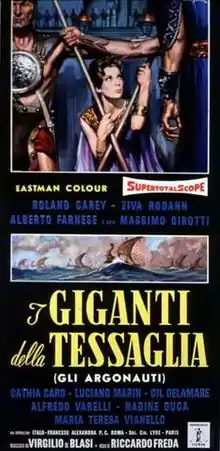The Giants of Thessaly (Italian: I giganti della Tessaglia (Gli Argonauti), French: Le Géant de Thessalie) is a 1960 Italian-French adventure-fantasy film directed by Riccardo Freda. It is loosely based on the epic poem Argonautica by Apollonius Rhodius.[3]