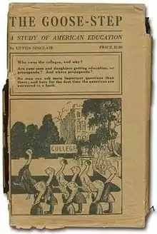 The Goose-step: A Study of American Education is a book, published in 1923, by the American novelist and muckraking journalist Upton Sinclair. It is an investigation into the consequences of plutocratic capitalist control of American colleges and universities. Sinclair writes, “Our educational system is not a public service, but an instrument of special privilege; its purpose is not to further the welfare of mankind, but merely to keep America capitalist." (p. 18)