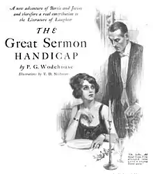 "The Great Sermon Handicap" is a short story by P. G. Wodehouse, and features the young gentleman Bertie Wooster and his valet Jeeves. The story was published in The Strand Magazine in London in June 1922, and then in Cosmopolitan in New York that same month. The story was also included in the collection The Inimitable Jeeves as two separate stories.[1]