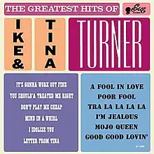 The Greatest Hits of Ike & Tina Turner is the first greatest hits album by R&B duo Ike & Tina Turner, released on Sue Records in 1965.[1] It contains songs from their albums The Soul of Ike & Tina, Dynamite!, Don't Play Me Cheap, and It's Gonna Work Out Fine. One song, "Mind In A Whirl," was a non-album track released as the B-side to the single "The Argument" in 1962.