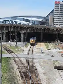 Railroad tracks separate the northern and southern sections of Downtown, paralleling Alabama Street. Originally there were level grade crossings, with only one bridge, but in the 1920s a series of viaducts was constructed. This brought the entire street system up to a higher level, and thus created a "gulch" at the former street level below.