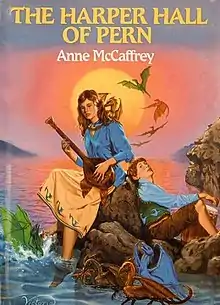 The Harper Hall trilogy is a series of three science fiction novels by the American-Irish author Anne McCaffrey.[2] They are part of the Dragonriders of Pern series as it is known today, 26 books by Anne or her son Todd McCaffrey or daughter Gigi McCaffrey as of 2018.[n 1][3] They were published by Atheneum Books in 1976, 1977, and 1979, alongside the Dragonriders of Pern series. Omnibus editions of the two trilogies were published by the Doubleday Science Fiction Book Club in 1978 and 1984, titled The Dragonriders of Pern and The Harper Hall of Pern respectively.[4]